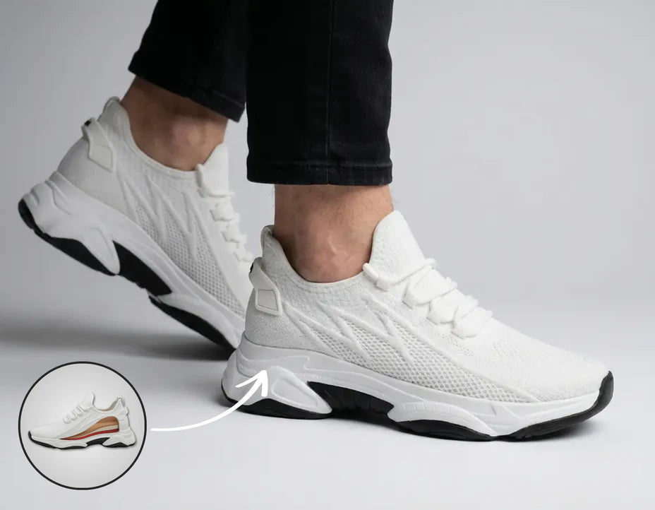 Die versteckte Lift-Technologie von Llifture ist nahtlos in die Zwischensohle des Sneakers integriert und sorgt so für ein klares und natürliches Design. Sie fügen sich perfekt ein, sodass jeder, der es bemerkt, Sie sind.